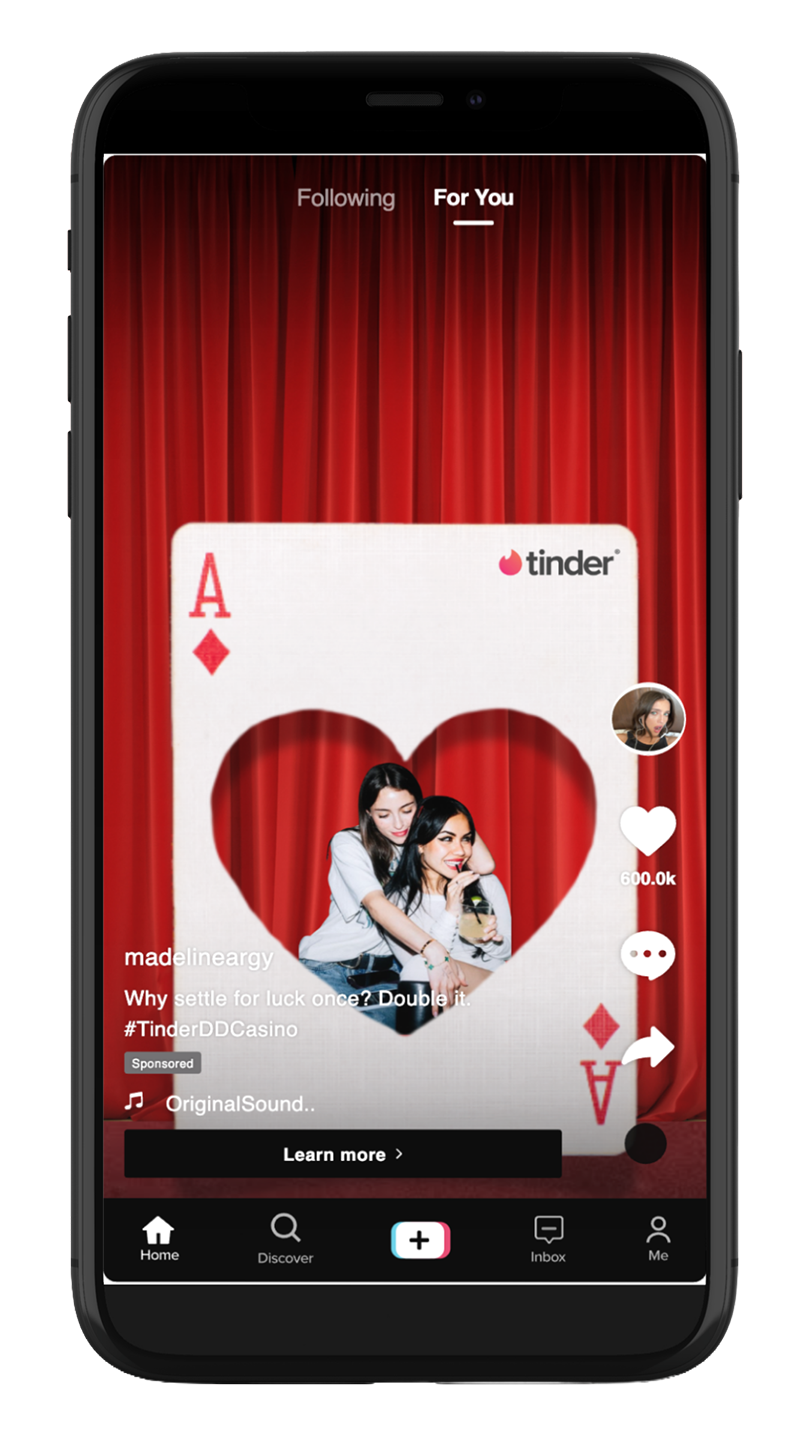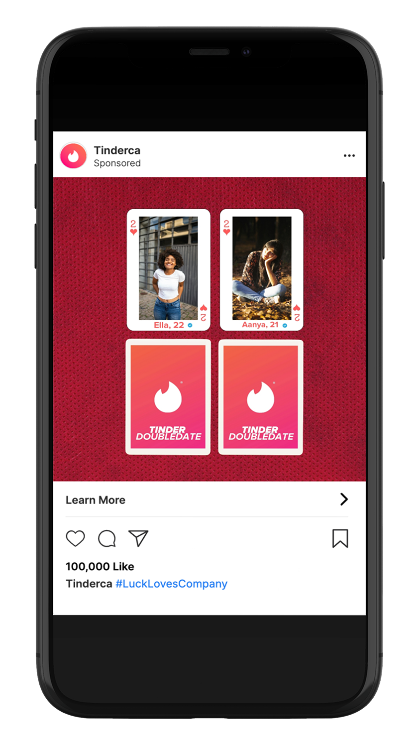 The campaign Luck Loves Company encourages date-goers to double up and double their fortune when dating. As a result, we turned dating on Tinder into a fun and low pressure experience by creating Tinder’s Double Date Casino. With custom games that give daters a chance to win free future date opportunities, love will surely be in the cards.